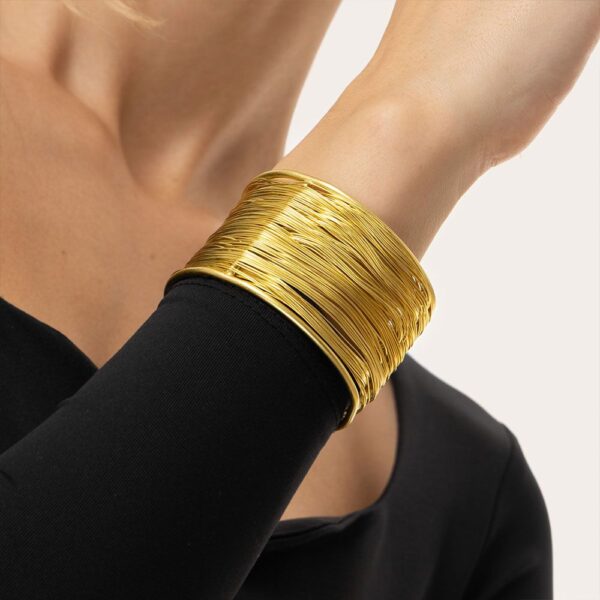 €28.00Bracciale in ottone riciclato a fascia caratterizzato da un design artigianale multifilo unico e iconico. Questo gioiello avvolge il polso all’altezza che preferisci grazie alla struttura morbida e regolabile. Un accessorio ricco di stile, brillante e contemporaneo, che racchiude perfettamente l’anima della lavorazione artigianale. Nickel tested. Gioielli fatti a mano, unici e artigianali, perfetti per tutti i tuoi look o come idea regalo.