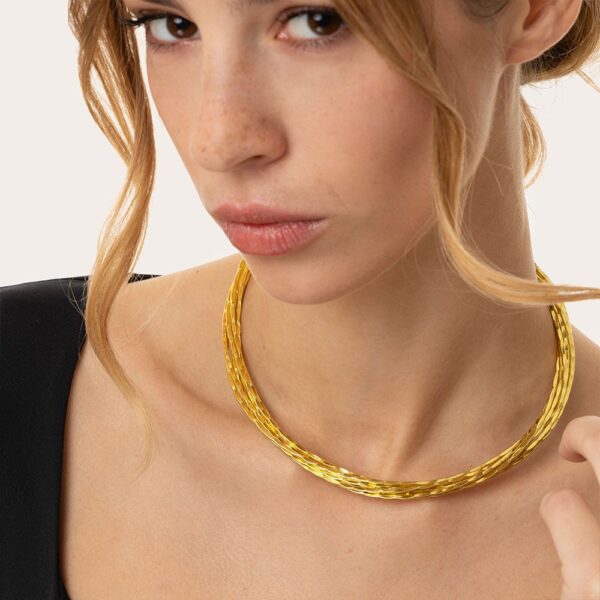 €24.00Girocollo in ottone riciclato caratterizzato da un twist in texture battuta. Gli elementi scolpiti manualmente donano movimento, in un gioco sofisticato e unico di luci e ombre. Un look artigianale dal gusto contemporaneo, perfetto da indossare sia con un outfit minimal che con capi eleganti. Nickel tested. Gioielli fatti a mano, unici e artigianali, perfetti per tutti i tuoi look o come idea regalo.