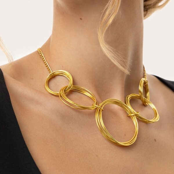 €24.00Collana in ottone riciclato caratterizzata da una chain di cerchi tridimensionali, simbolo di continuità e stile timeless. La composizione impattante e bilanciata rende questo gioiello perfetto per completare il tuo outfit preferito. Chiusura regolabile con moschettone. Lunghezza collana 40 cm. Lunghezza extra chain 6,5 cm. Nickel tested. Gioielli fatti a mano, unici e artigianali, perfetti per tutti i tuoi look o come idea regalo.