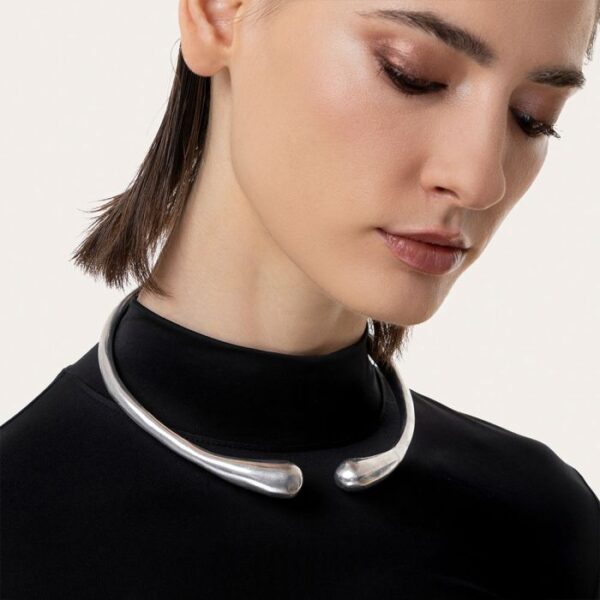 €24.00Collana modello girocollo con terminali a goccia, realizzata in alluminio 100% riciclato. Design essenziale e moderno dalla texture smooth e brillante, perfetto per valorizzare il collo con un tocco minimal e audace. Nickel tested. Lavorazione artigianale. Gioielli fatti a mano, unici e artigianali, perfetti per tutti i tuoi look o come idea regalo.