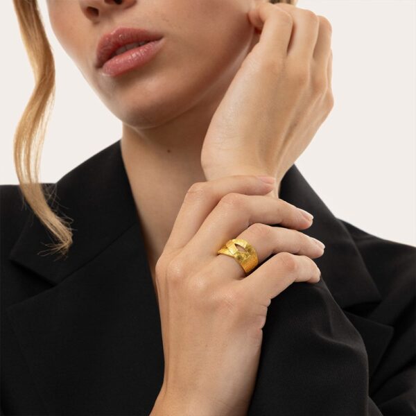 €10.00Anello in ottone riciclato caratterizzato da una fascia microfilo, lavorata interamente a mano. Il design ampio e avvolgente dona carattere alla mano, mentre la regolabilità assicura una vestibilità perfetta. Può essere indossato da solo per un look deciso o abbinato ad altri anelli per creare uno stack d’effetto. Nickel tested. Lavorazione artigianale. Gioielli fatti a mano, unici e artigianali, perfetti per tutti i tuoi look o come idea regalo.