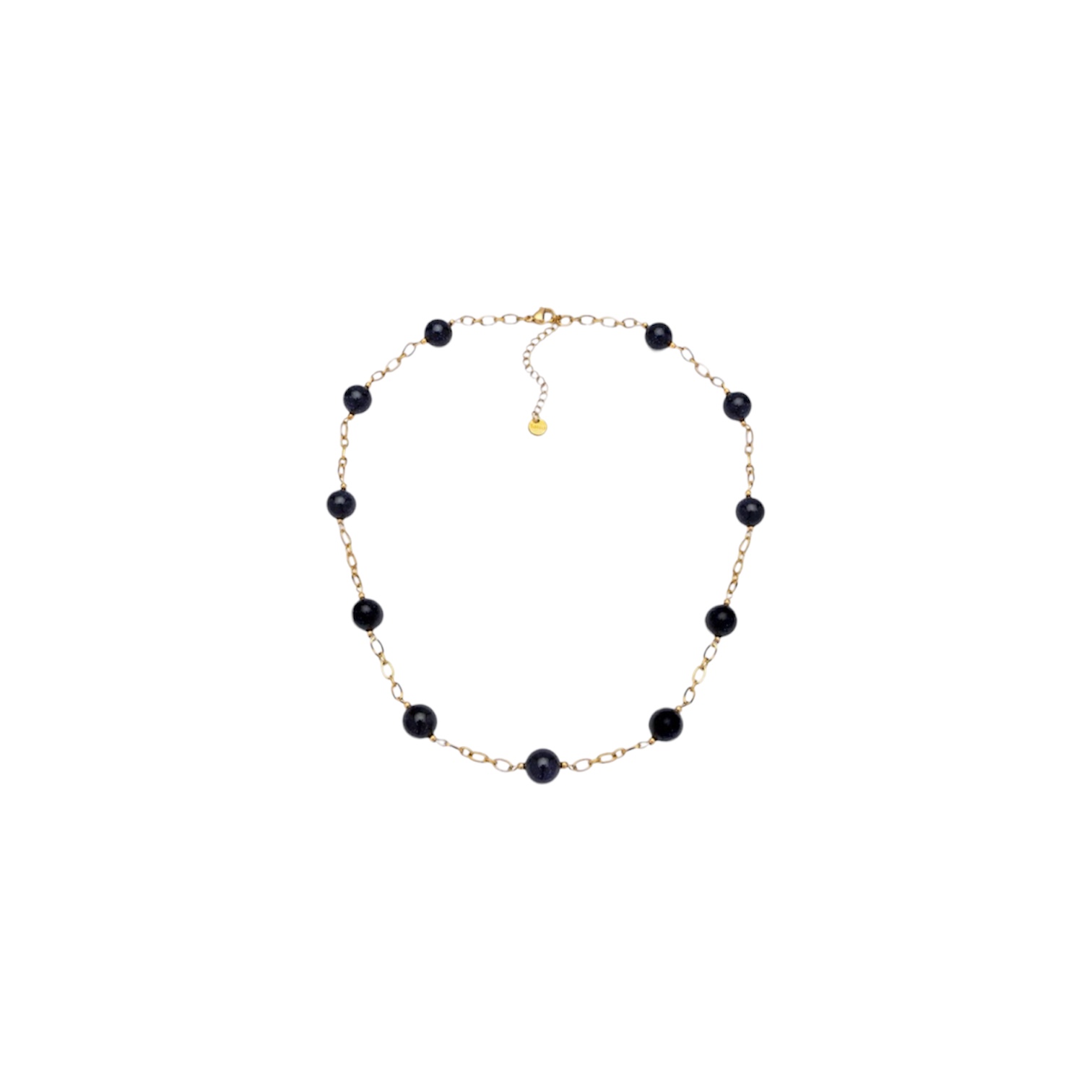 Collana in acciaio gold plated e sandstone (pietra blu notte dall’effetto glitterato).