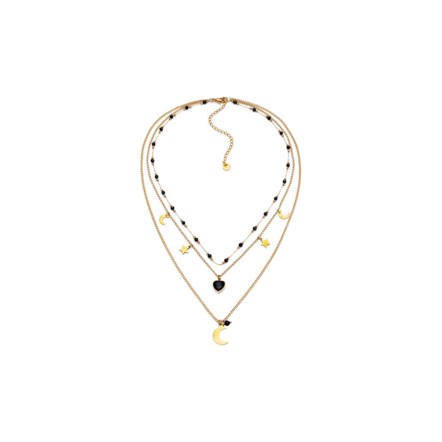 Collana in acciaio gold plated e sandstone (pietra blu notte dall’effetto glitterato).