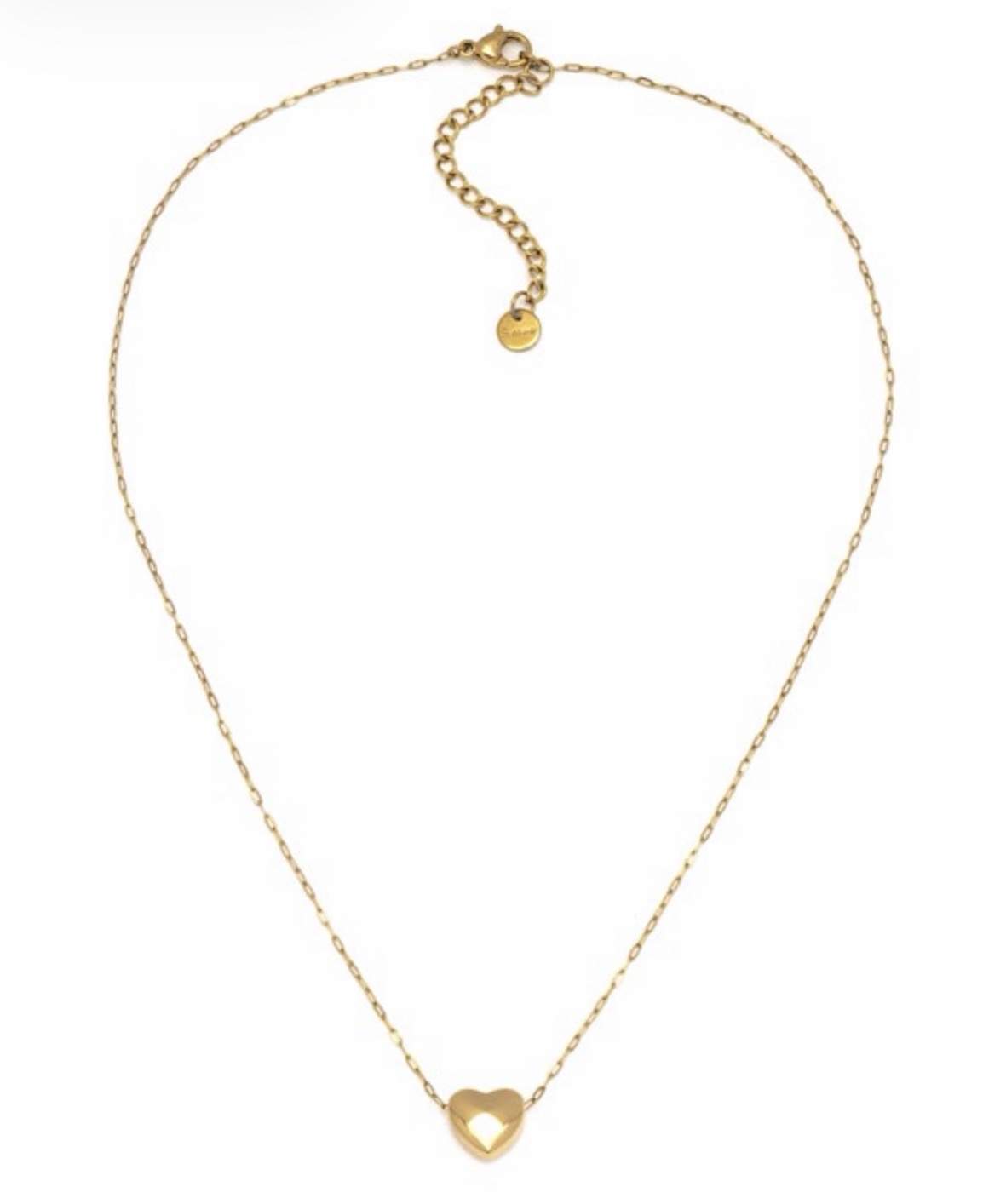 Collana in acciaio gold plated modello ultra fine con piccolo ciondolo a forma di cuore, discreto ma luminoso. Un dettaglio semplice che si abbina facilmente a dress eleganti o look casual. Chiusura regolabile con moschettone. Lunghezza collana 39 cm. Lunghezza extra chain 5 cm. Nickel tested.