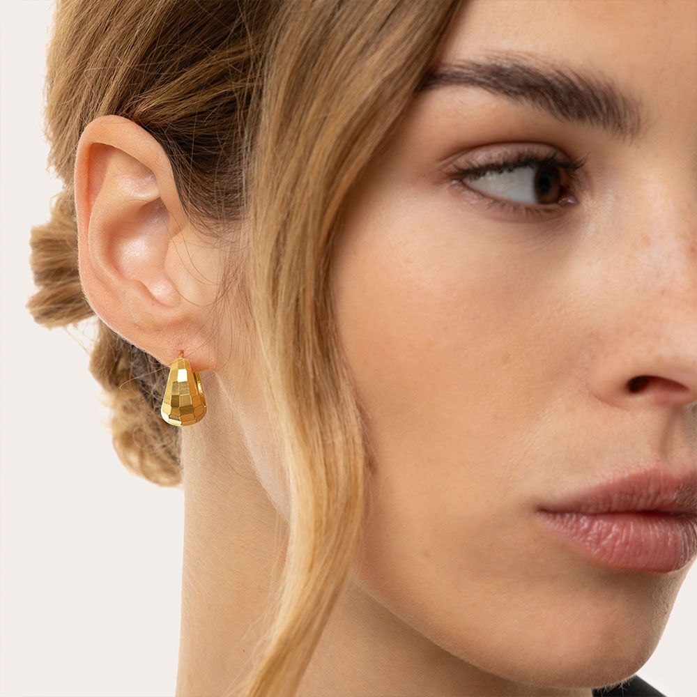 Un mondo di stile in un piccolo gioiello. Orecchini a cerchio in ottone riciclato con superficie martellata, dall’effetto luminoso e sofisticato. La texture sfaccettata cattura la luce a ogni movimento, per un tocco di eleganza discreta ma decisa. Chiusura a scomparsa, perfetti per un indosso pratico e quotidiano. Diametro 1,5 cm. Nickel tested. Lavorazione artigianale. Gioielli fatti a mano, unici e artigianali, perfetti per tutti i tuoi look o come idea regalo.