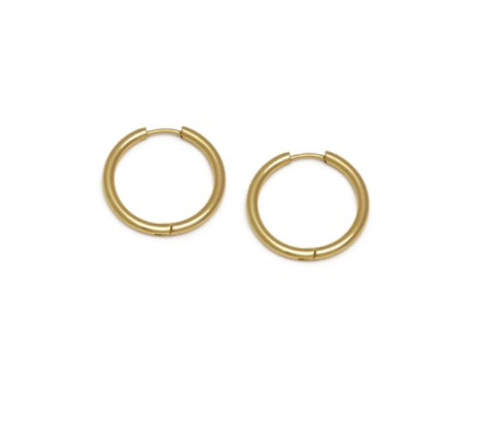 Orecchini a cerchio in acciaio gold plated modello hoops piccoli. Per chi ama dettagli classici ma lineari, con un design essenziale ma ricco di stile. L’essenziale fa la differenza con questo gioiello must have. Ideali per essere protagonisti oppure abbinati a modelli bold per un earrings stack armonioso. Chiusura a scomparsa. Diametro 2 cm. Nickel tested.