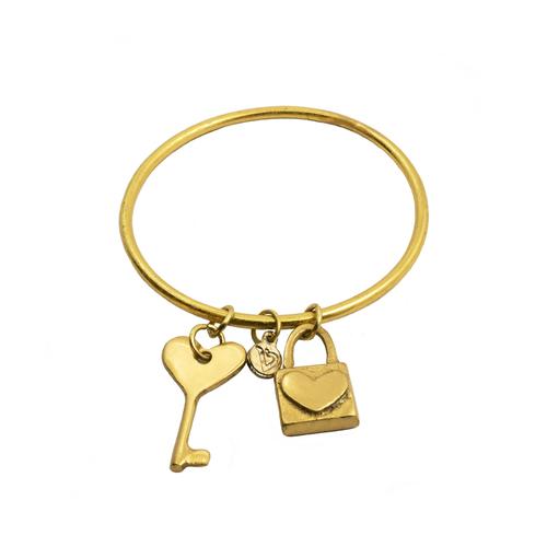 Bracciale rigido con 2 pendenti chiave e lucchetto. Lavorazione artigianale.