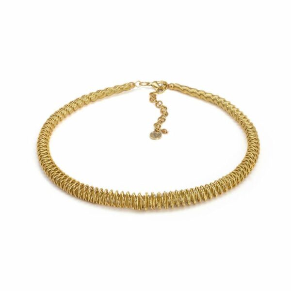 Girocollo con lavorazione a rete. Chisura regolabile con moschettone. Lavorazione artigianale.