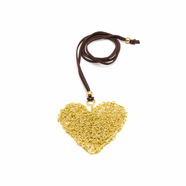 Collana filo regolabile con pendente cuore microfilo. Lavorazione artigianale.